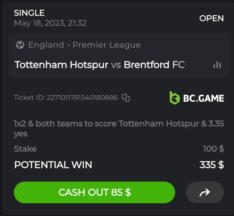 15. Ticket ID / Bet ID : 2258529849956245783