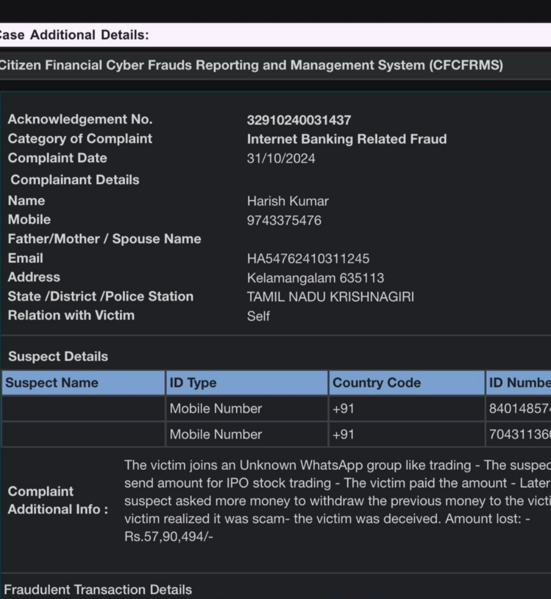 2. Case 1Order Details:Withdraw Amount: 25000 INROrder ID: F-1847607437977800173Status(f4): SuccessFee: 0 INRCreated Time: 1/11/2025, 10:19:20 pmCase 2Order Details:Withdraw Amount: 10000 INROrder ID: F-1847607632385834428Case 3 Order Details:Withdraw Amount: 50000 INROrder ID: F-1847141698153024199 UTR :530071143441 UTR: 530795694002 UTR: 530795688816 THe merchant is involved in fruad activities the money was ilegal i withdraw bank account is frozen due to these amount now it needs legal proceedings bcgame is telling me on we can't help you as i was complaint with in 30 days they didn't take action now if ask them check they replied that is more one month old that is not excuse that is scaming openly near about 10 deposit forfited or sacmed 15 withdrawal forfited that is not fairness