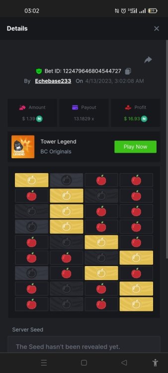 10. https://bc.game/#/sd/117H2E610NG5CJ The first one I posted I couldn't get the medium tower link. I didn't read the rules so I just did now and won this one. Again But busted though